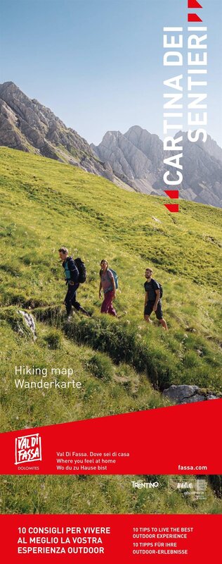 Die Wanderkarte, gegen Gebühr (50% Rabatt für Inhaber der Val di Fassa Guest Card), ist in allen Touristenbüros des Tals erhältlich.