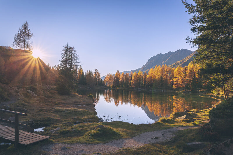 Costalunga, Fedaia, Pordoi, Sella und San Pellegrino sind die fünf Pässe der Dolomiten des Fassatals. Hier färben Sonnenaufgang und Sonnenuntergang die majestätischen Felsen mit warmen und intensiven Farbtönen: von hellgelb bis feuerrot, von rosa bis violett. Das Phänomen Enrosadìra drückt den Liebeskummer König Laurins und seines Rosengartens aus.