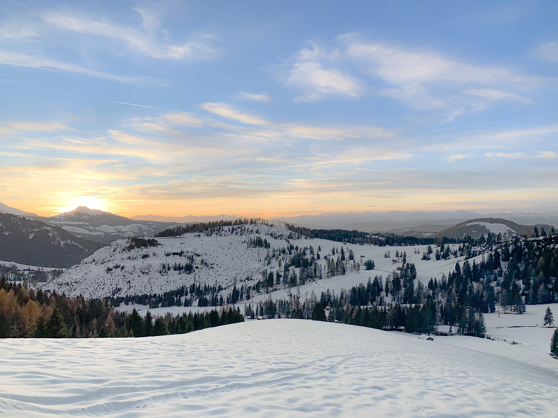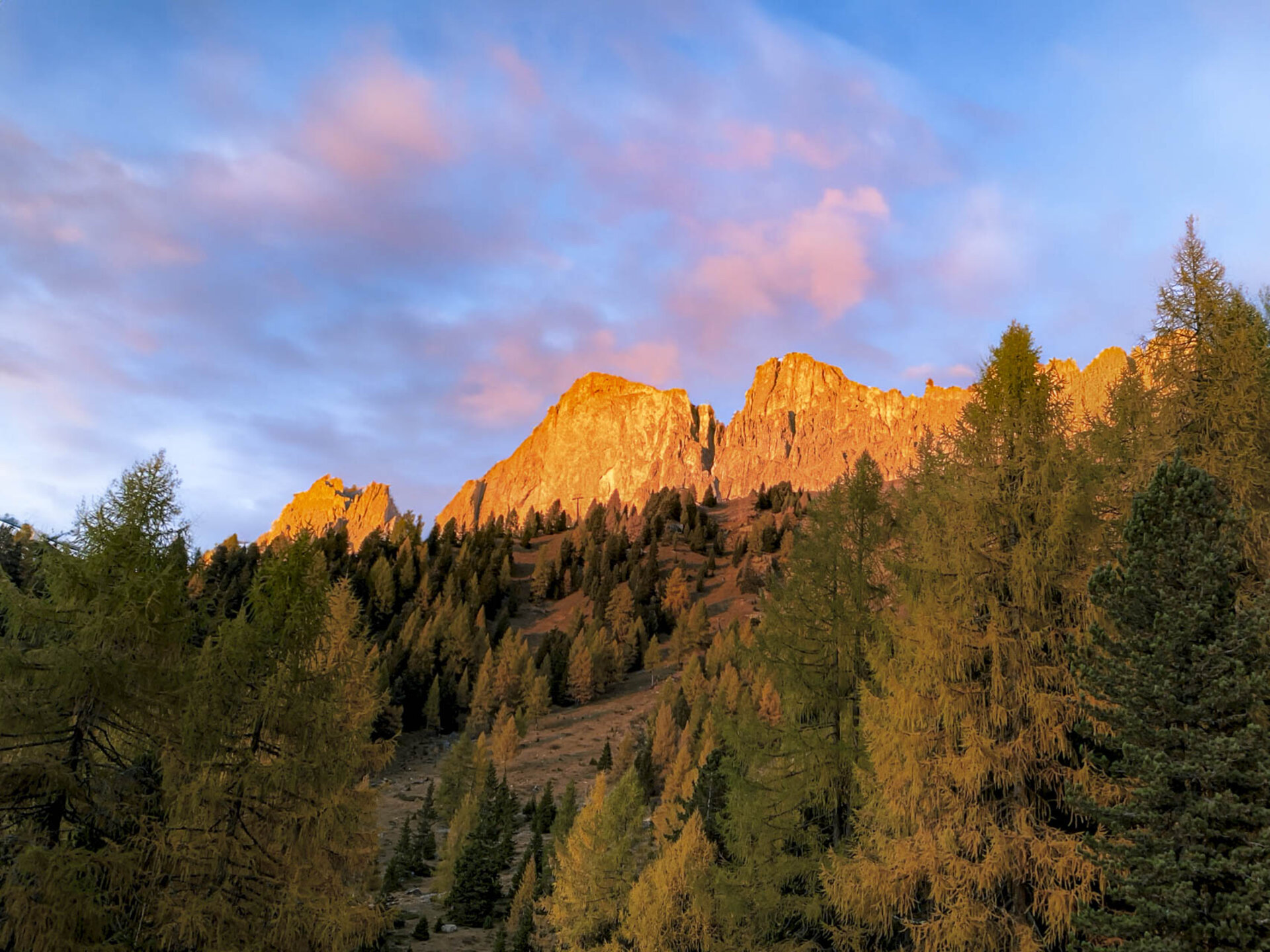 Von der Laurins Lounge Hütte über die Latemar Gruppe.