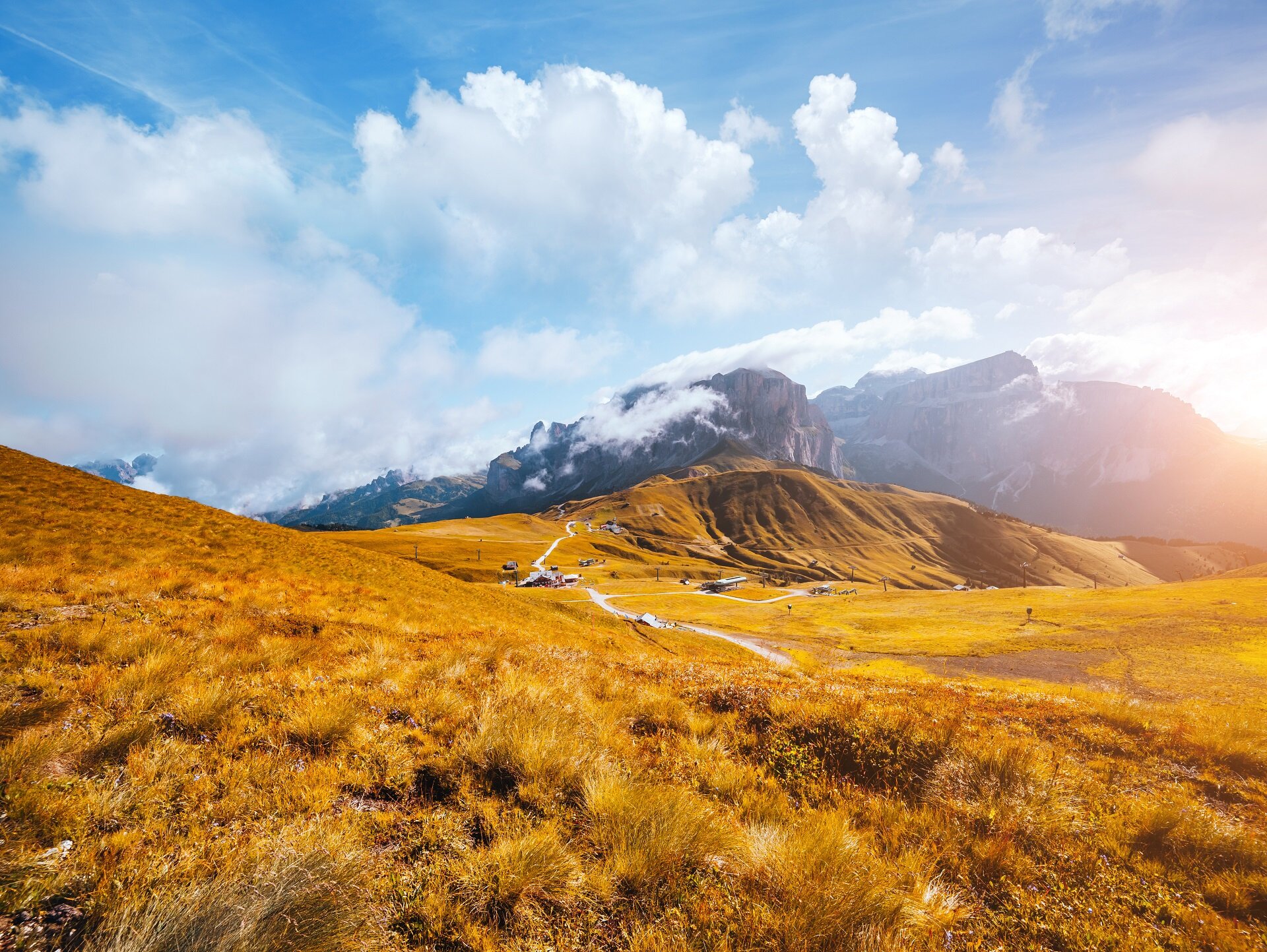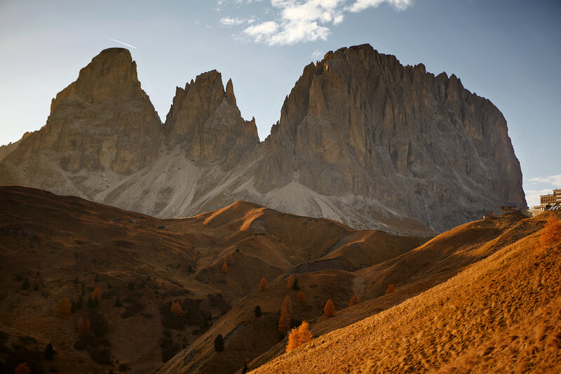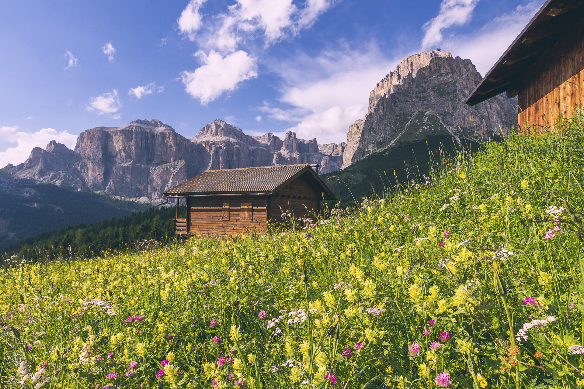 Das malerische Zentrum von Canazei ist zwar sehr leicht zu erreichen, aber man kann auch in einem der zahlreichen Unterkünfte am Passo Sella übernachten.