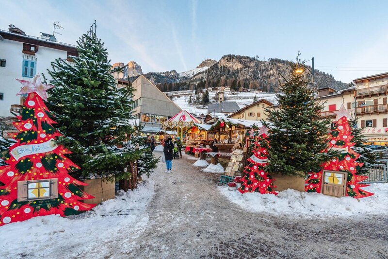 On Friday 8 December, Campitello inaugurates an evocative market for true connoisseurs of Christmas atmospheres, balanced between the poetry of the crib in the square and the enchantment of the Sassolungo in the background. The characteristic little wooden houses, offering handicrafts, typical gastronomic delicacies, and artistic and handicraft products from the Dolomites, are carefully set up along a pleasant pedestrian path leading from "Piaz de Ciampedel" to "Piaz Veie". There is music, there is atmosphere, there is the horse carousel, there is the choreography of the decorations, the illuminations, the majestic tree, the ice fountain and, to warm you up, there is a fragrant hot mulled wine to accompany a tasty bretzel with speck and "Chèr de Fascia" cheese or delicious "fortaes" (typical sweet snail-shaped pancakes). Who knows, strolling among the various stalls, the last-minute gift might jump out at you...