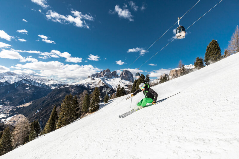 This slope demands your full attention. Right from the start, this slope challenges you: not only with its steep gradients of up to 63.4% but also with the breathtaking beauty of the Dolomites, where the Sassolungo and Sella might just steal your focus. It's a thrilling descent that requires you to constantly manage difficulties, even though curve after curve, it feels truly rewarding and fills you with gratitude towards life. A test that, as soon as you descend at high speed from Col dei Rossi to "Pecol", you will want to repeat.